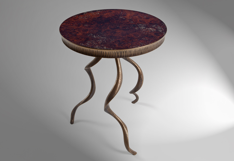 Texture: webbed board | Surface: copper, patination