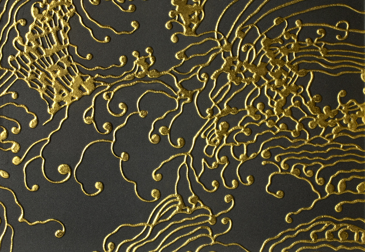 Struktur: flockig | Oberfläche: Dukaten-Doppelgold hinter Glas